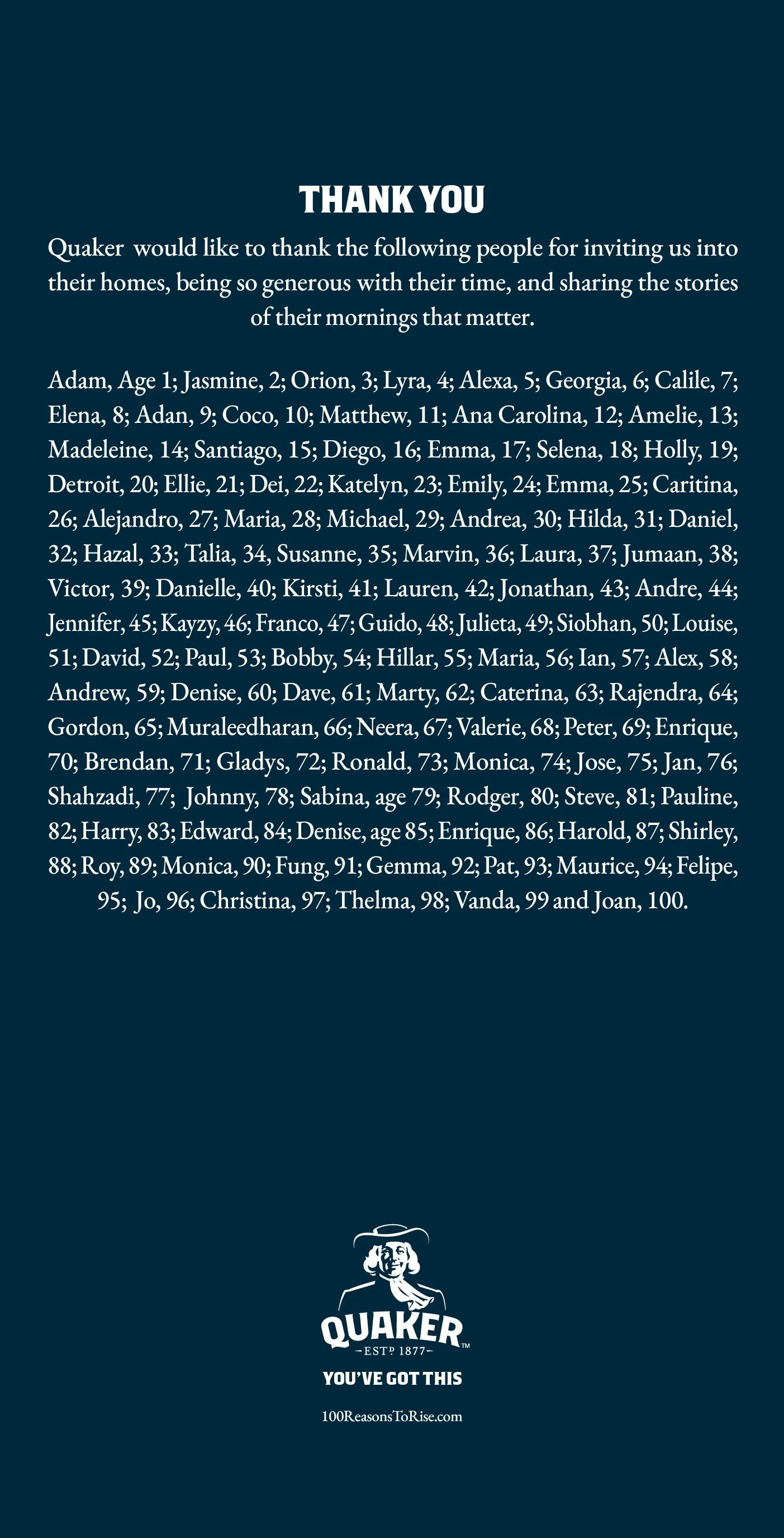 Quaker presents “100 Reasons to Rise”, a photo documentary from Misan Harriman & Domizia Salusest capturing people aged 1 to 100 on their mornings that matter.